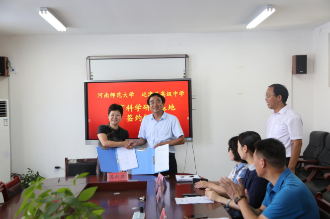 接着,大家来到行政办公楼二楼会议室,举行河南师范大学教育科学研究基地签约仪式。