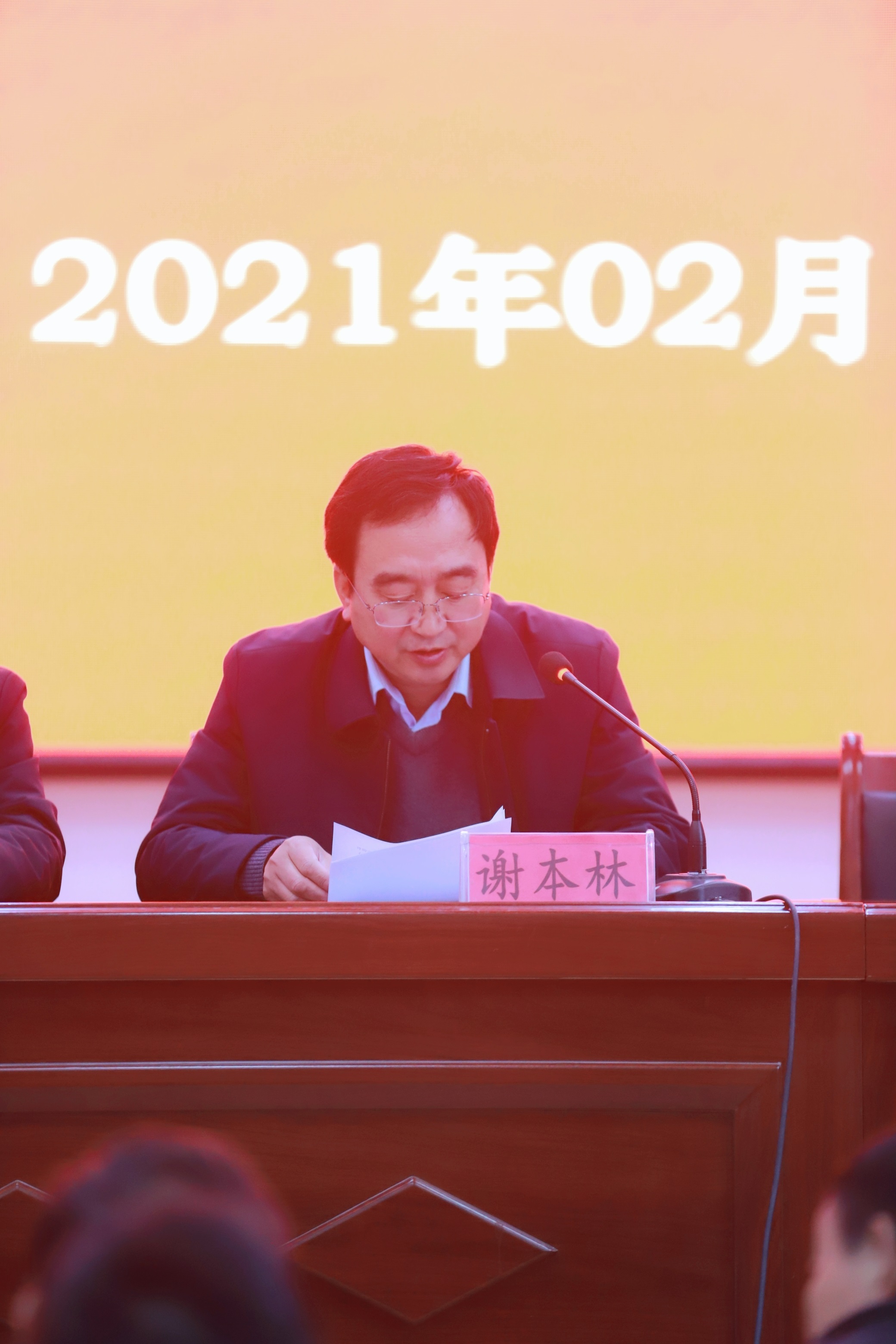 大会进行第二项:请学校党总支书记、校长谢本林同志致开幕词。(大家欢迎)