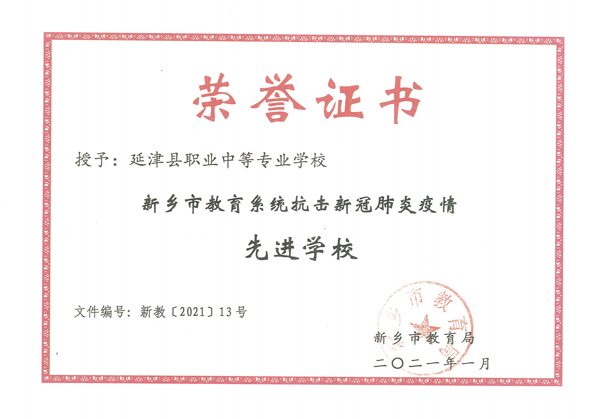 365官网荣获“新乡市教育系统抗击新冠肺炎疫情先进学校”荣誉称号